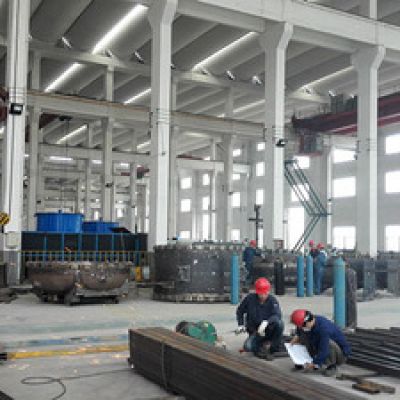攪拌缸帶導(dǎo)熱油加熱,防止熱量流失;在放料門(mén)的下方裝有一道防漏門(mén),確保在攪拌缸放料時(shí)無(wú)瀝青混合料灑漏;